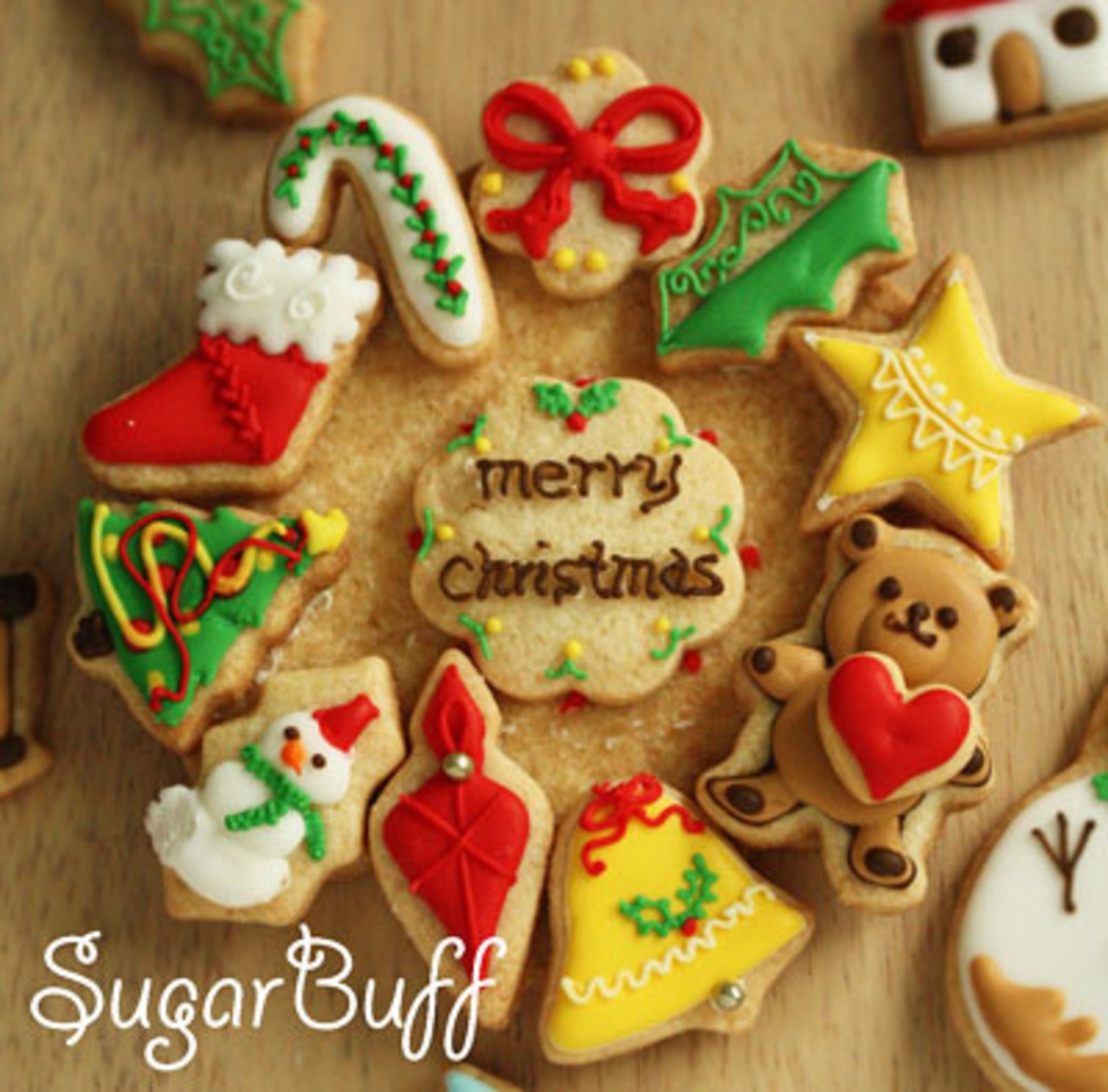 クリスマスの楽しさいっぱいに飾ったリースクッキーです。